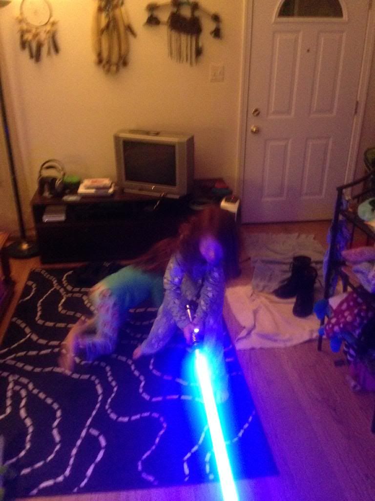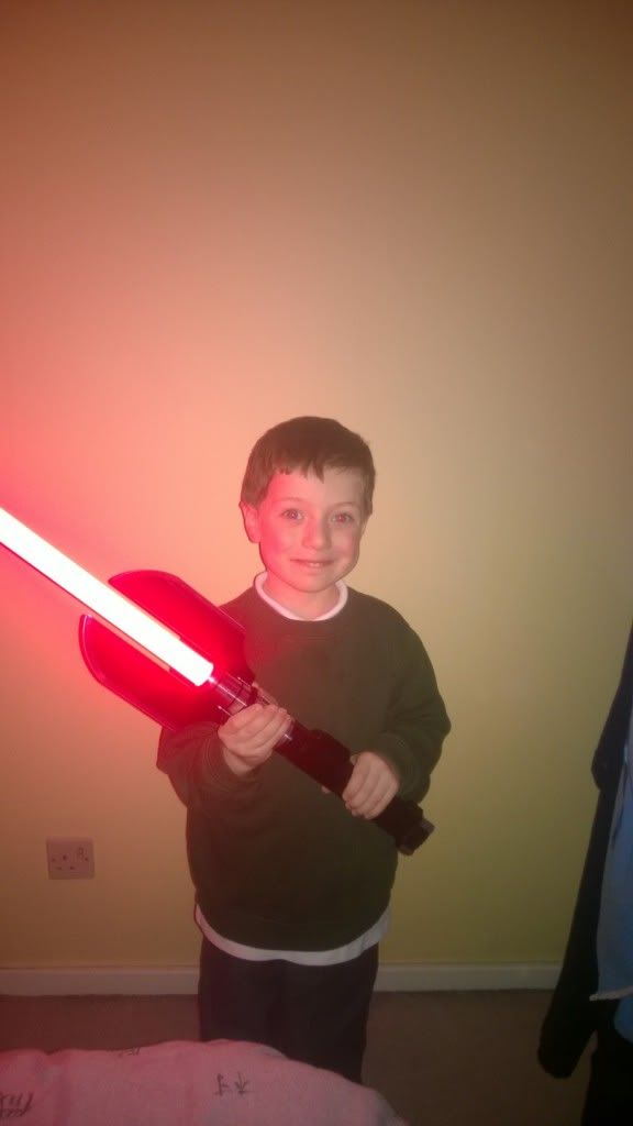 My son pre Ultrasabers, however no less a jedi knight!  We are spelling different letters with our lightsabers. The classic "T" shape:)  One of many times we've spent practicing blocking techniques(and many times my little girl has walked through us and never been accidently smacked!)  My boy again with his awesome jedi costume his mom made(posted in a previous pic thread), and now with his GB Prophecy V3.