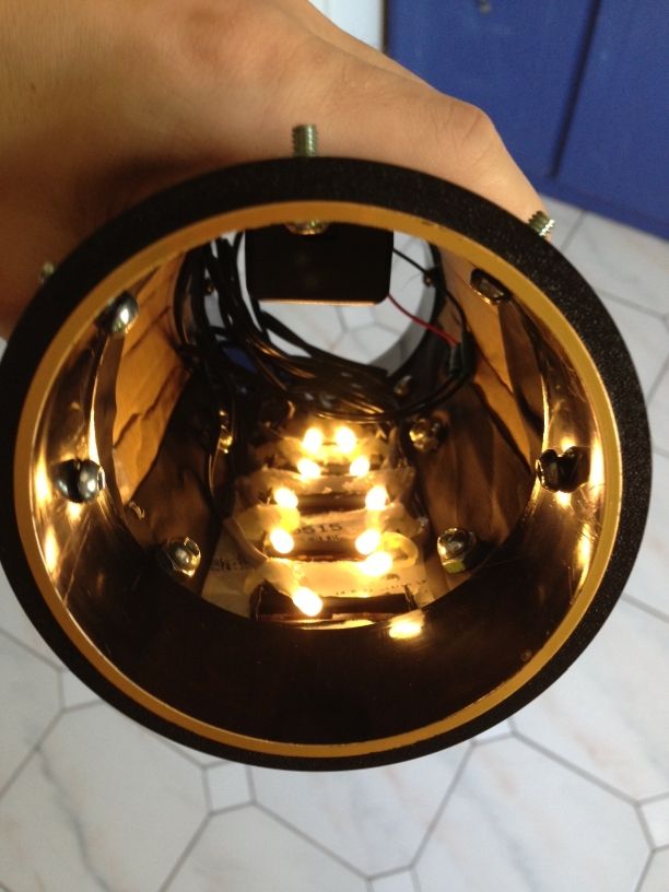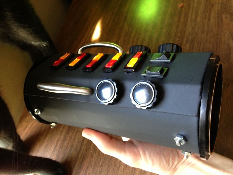 I finished it off with some knobs and two chrome drawer pull-handles.  The best part about the knobs and handles is that they actually secure the LED panel to the rest of the bracer cylinder.
