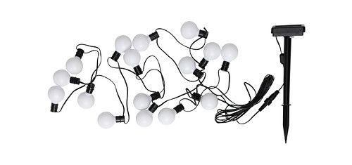 I removed the plastic bulbs (obviously) and was actually going to incorporate the solar panel into the design (it was black and shiny and kinda sinister looking) but it proved way too big (even without the stake).  When I took it apart I found that it was powered by a single rechargeable AAA battery.  I cut the wire short, separating the LED chain from the rest of the kit and attached it to a battery holder with a built-in on/off switch that I picked up at a local DIY shop.  I'm not good with electronics but it was a simple task to attach the LED string to the leads on the battery box.