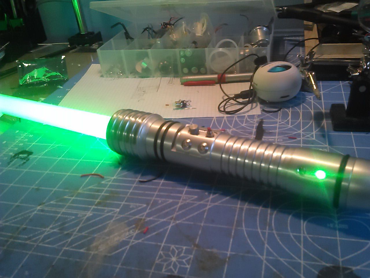 Another one for the green assembly Zapdos the Archangle of Justice  This one was made for my sister in law running a hasbro anikin/vader board from my kit fisto with a luxion green a 2w bass speaker and a si.gle 18650 battery.