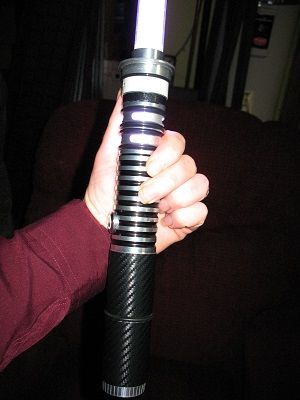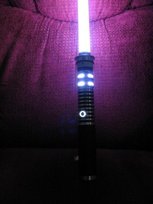 I forgot to add this in my original post. Its got the flush coupler connected to the stock choke with the female/female coupler. The over all length is 15.25". It feels amazing to swing around, very well balanced with a shorter blade. I just measured the blade and somehow I got a 30.5" blade, perhaps with my initiate hilt. This blade extends 23.75" from the emitter. It feels perfect.  Sent from my XT907 using Tapatalk 2