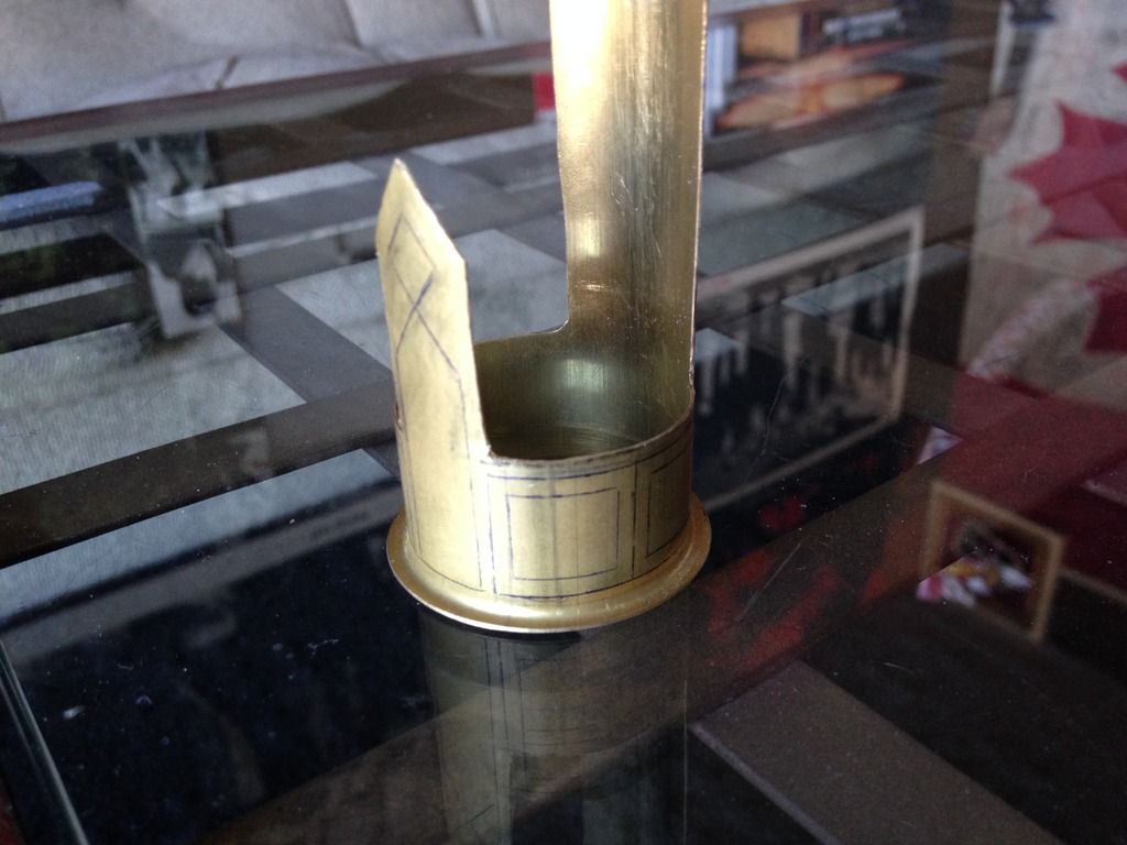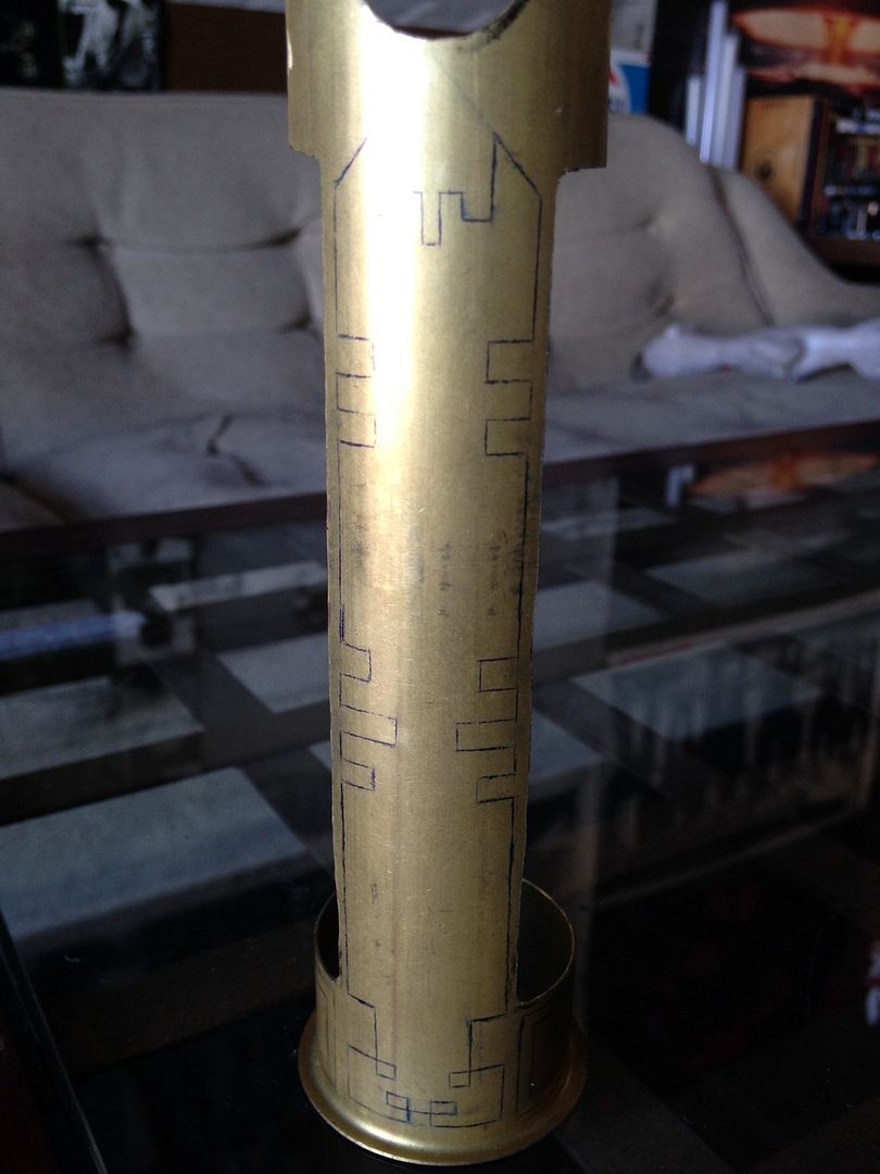 Hi all  . I got the pattern I'm going to engrave on the inner shroud marked out... Hmmm, maybe a little ambitious considering I've never engraved anything in my life lol, but you gotta learn somehow! I'll have to mess around on some scrap before I start  but I guess if it's worth doing it wouldn't be any other way lol. Keep you posted, MTFBWY.