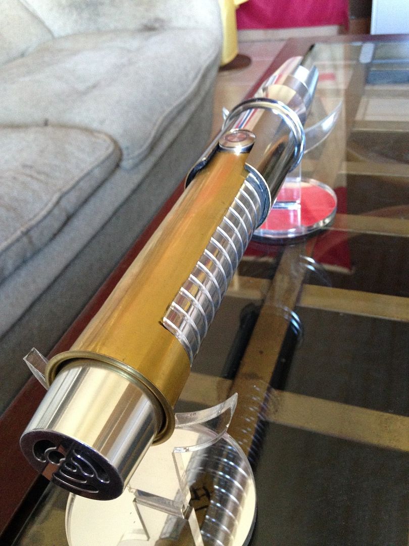 Sabers I own: Graflex Tri-cree AB w/sd & bronze buttons Consular CG w/sd an silver foc Archon CG w/sd an silver foc Prophecy CG w/sd an silver foc Dorinian SRD w/lite sd and AB foc Exile in CG w/sd an silver foc Guardian in GB Aeon V3 in GB Dark Standard Issue BR w/vert grooves Dark Apprentice AB (Free) Sentinel LE V4 w/windows in SY Dark Sentinel LE V5 in AB (Raffle prize) Initiate LE V4 in GB Dark Initiate V2 in GB (free) Franken saber in VA Dominix LE V2 in BR (friend) Wish list: Sound in my Guardian, Dark Prophe