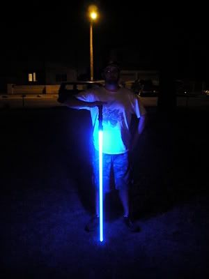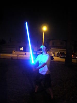 You should try biggie. It started life as a 48 inch blade that I picked up off of ebay. Last week I cut a few inches off of it to gain speed and handling without giving back too much of its monsterous reach. It gives me 42-43 inches of blade out of an Aeon and other such sabers and when I really want to go nuts its good for around 40 out of my Yari. With standard hilts the total length runs 54 to 58 inches for the whole enchilada and about six and a half feet with my Yari without the extension and it can't fit through a standard doorway well with the extension.