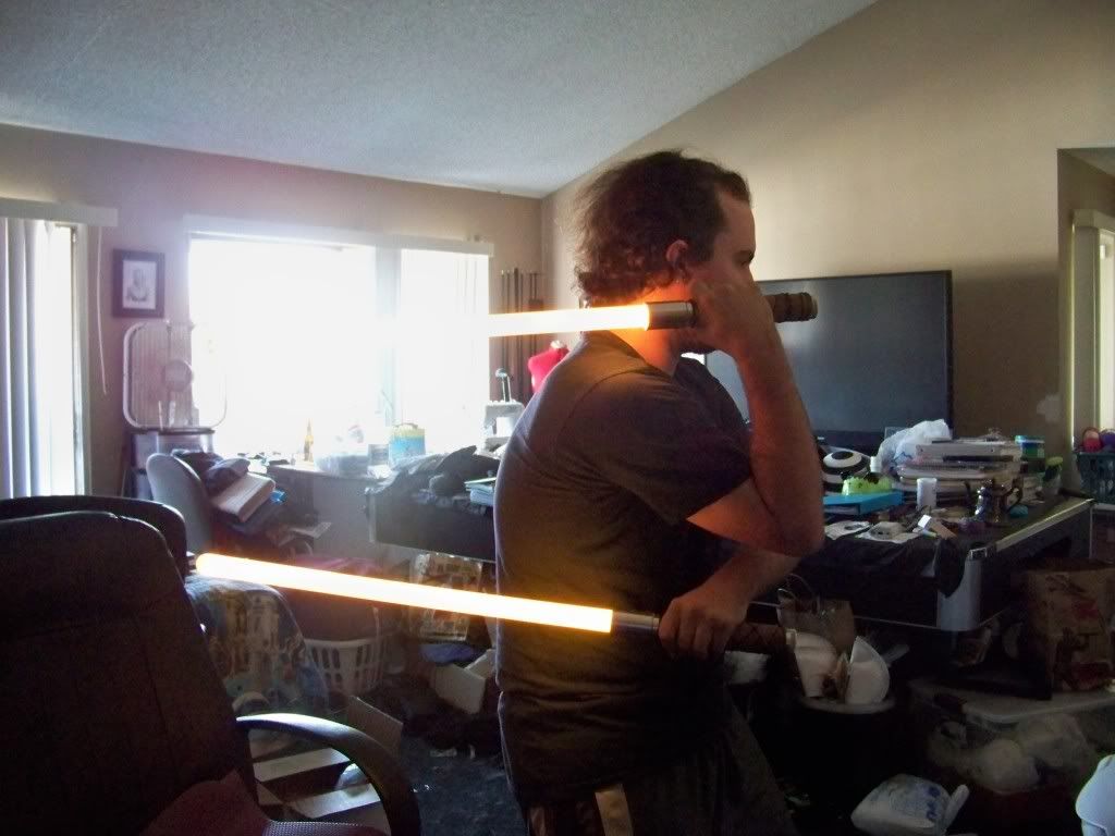 Those are some cool pics Kham. Your regular grip reminds me of Heaven and Earth, an Escrima exercise Artorius and I do sometimes with our sabers. It's a lot of fun!