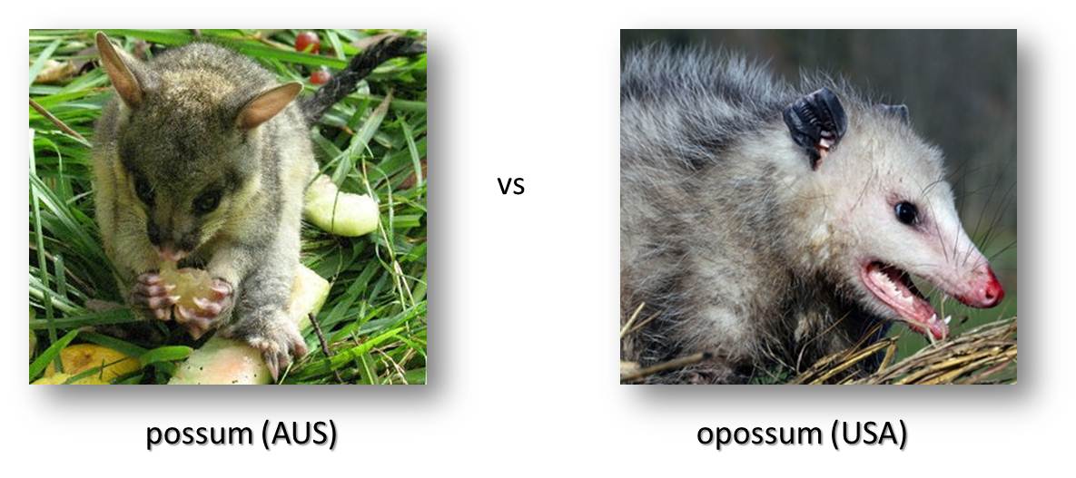 I swear that American and Australian Possums got mixed up en route. Aussie possums are cute, cuddly rodent-like creatures with a beautiful coloration. American possums are the angry mutant albino offshoot you'd swear was a result of toxic waste dumping.
