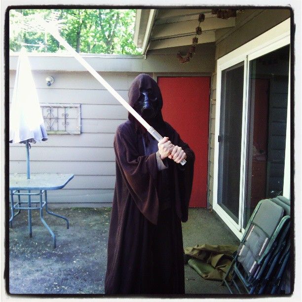 I need to get a better shot of the mask and the saber but here's an idea of what my Grey Jedi Sith infiltrator character looks like.
