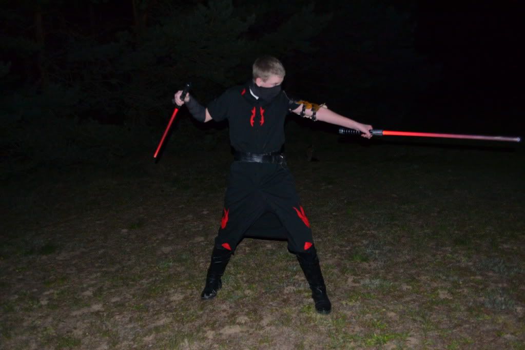 Group shot.  Me in the middle, with my sister in her Miralukan costume, and my friend borrowing my Sith costume.