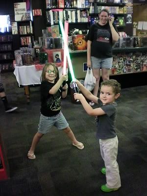 Star Wars Day at Bookman's:  Jammo with the band and his Liberator  Darth Small found a little Jedi  Dreaming won a raffle ...and all in all, we had a good time.