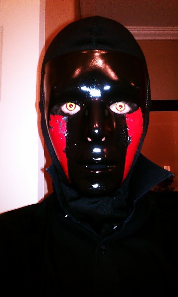 Very awesome! what did you use for your mask? Also, I think it would look sick if you put thin black cloth under the eye holes or even get a pair of nice contacts.  Just to seal the deal on being evil Smiley Just recommendations though.  Other than that, I'd say that costume is flawless