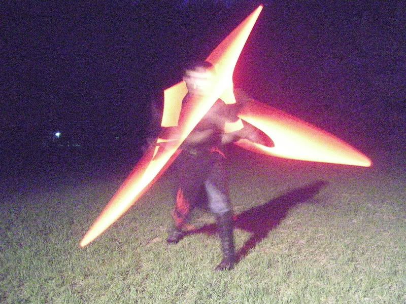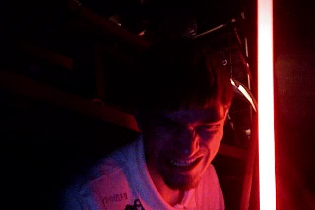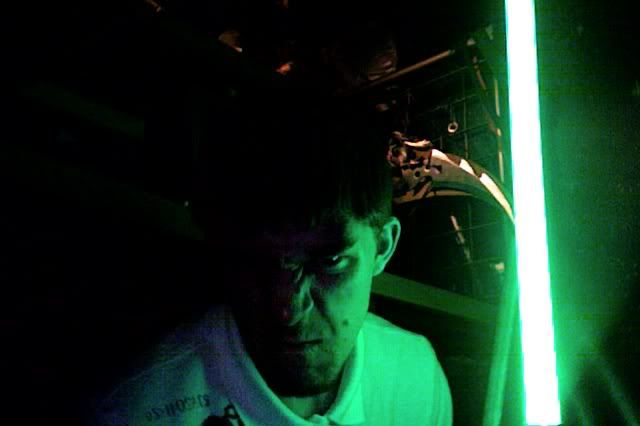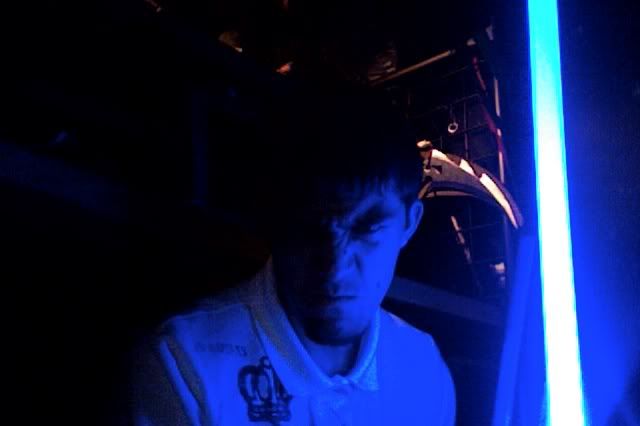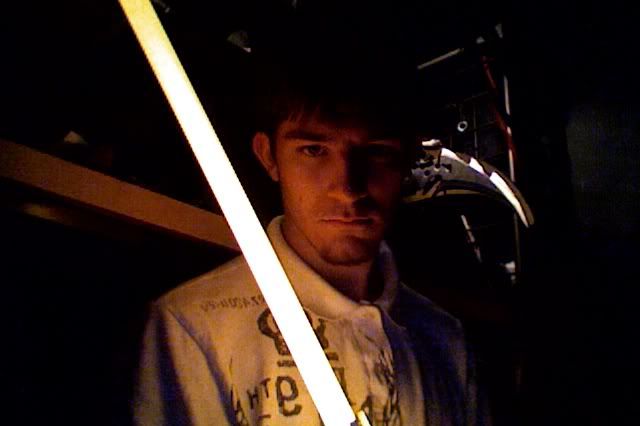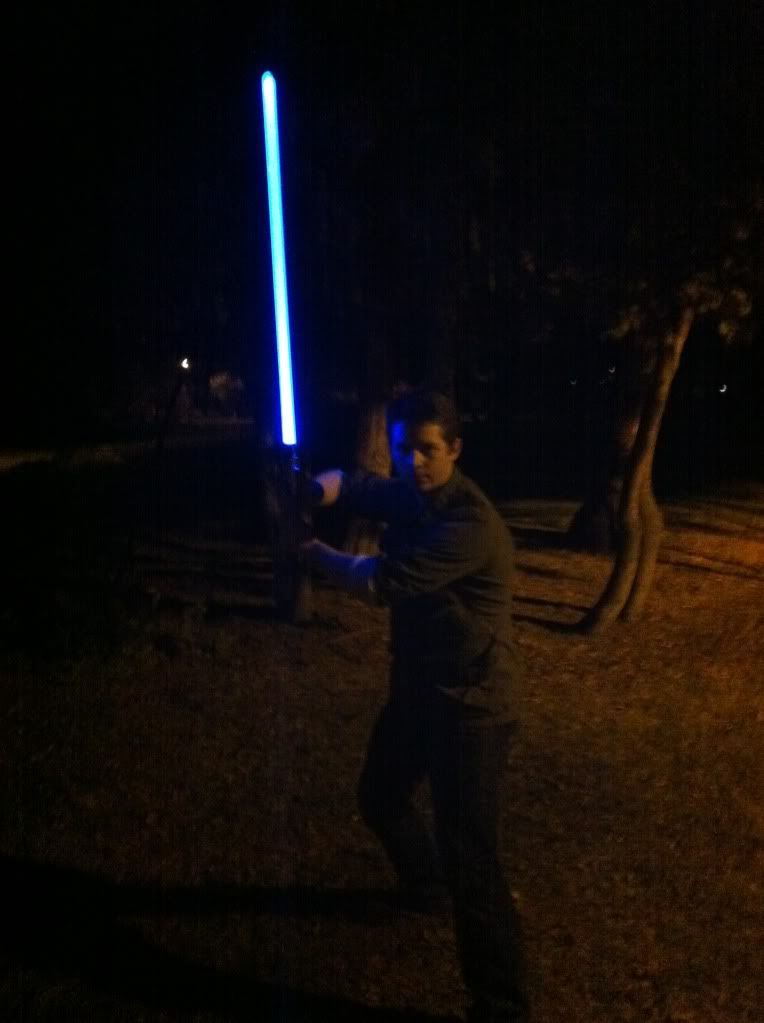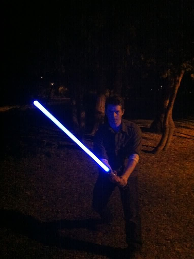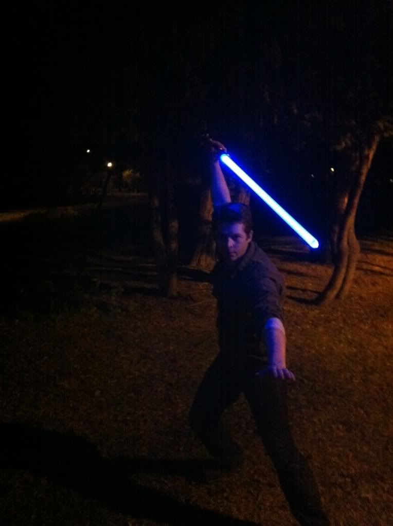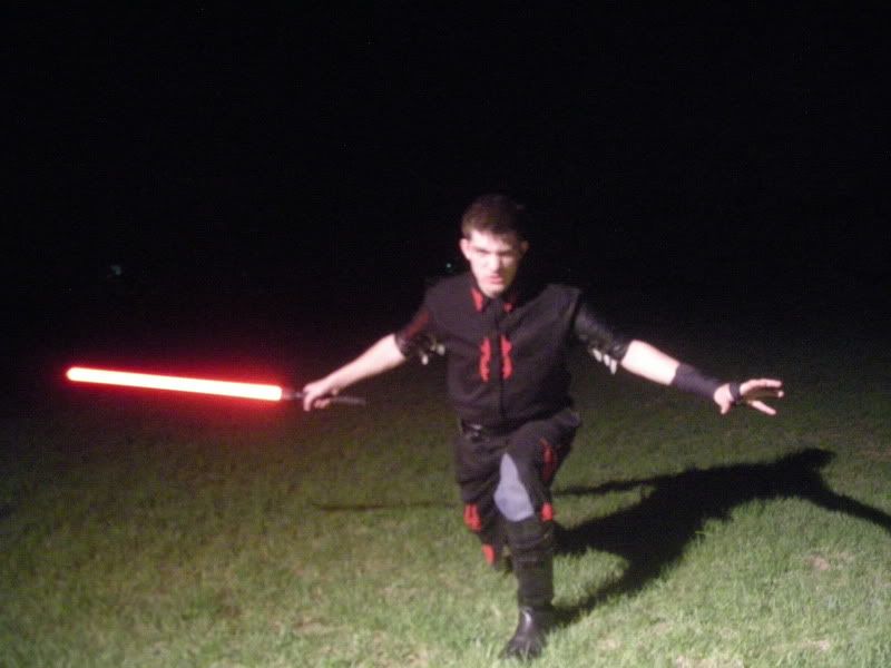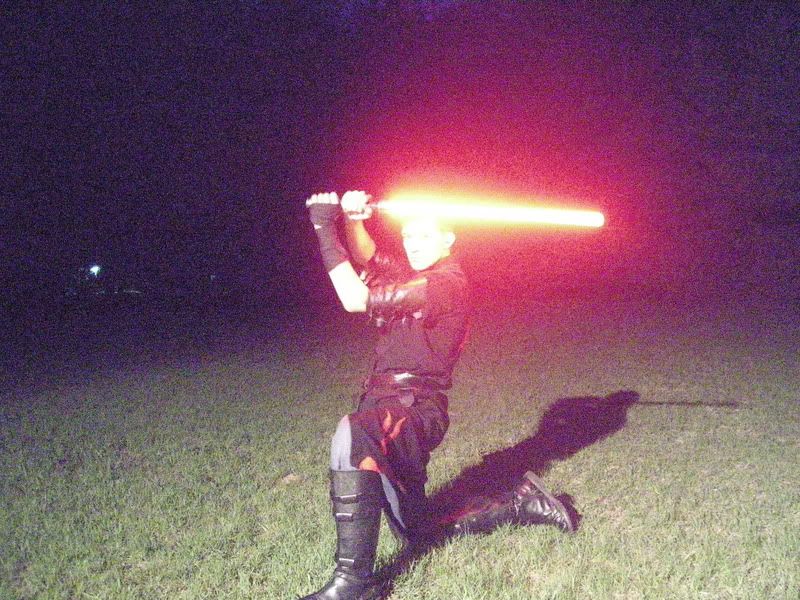 Guess I oughta post some pics too... Enjoy! My personal favorite:  The lightsaber glow is not embellished at all in these. In fact, I had to dim it a bit in this photo.  Then I had a moment of Darkside...  I overexposed my blade a little bit here.  Some Juyo/Ataru  This is the ready stance of my own personal mix of the styles. Single saber; one handed; really really fast.  Fabulous, but how do you get the light trails in the pictures? *puzzled*
