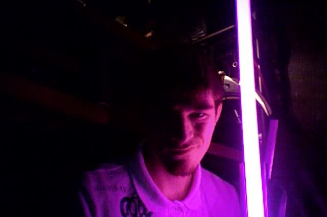 Well I thought I'd do some fun stuff with my sabers and try to capture all the current colors that we've seen and asked Ultrasabers to make for us. And yes, I was in character for these pics. All these pics are with UltraEdge Heavy Grade blades and fresh batteries. Warning: Some of the colors in the following pictures are recreated using my RGB saber and the color filters that come with Adegan Silver. Do NOT take these for perfect representations of the colors mentioned. These are just my attempts at re-creating these colors. Arctic Blue:  Guardian Blue:  Sunrider's Destiny (This pic is about how I looked when I found out my grandfather had died [much anger, much pain]):  Consular Green:  Fire Orange (can't figure out why orange doesn't give that 'aura' glow the other colors do):  Blazing Red:  Violet Amethyst:  Dark Violet Amethyst:  Bane's Heart:  Pyrestone Orange:  Sentinel Yellow:  Adegan Silver:  The colours are very pretty, and SOME of the facial expressions are pretty....erm, grotesque! hehe
