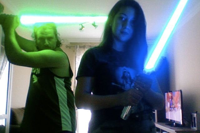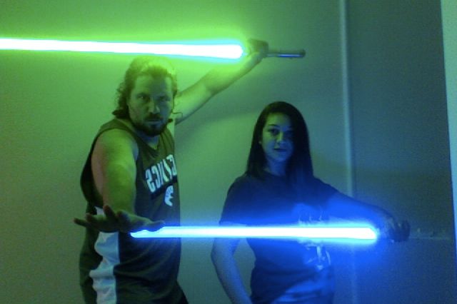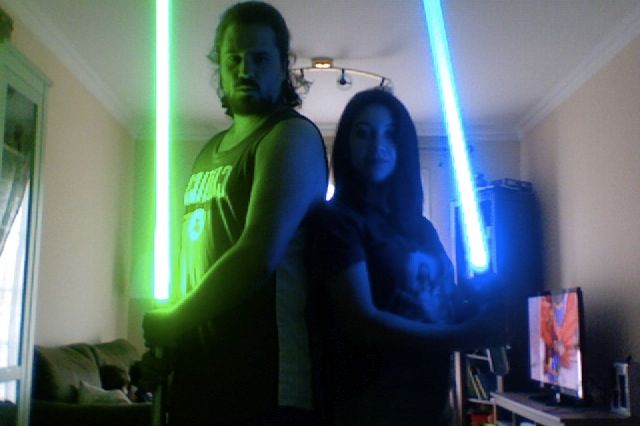 Hi L J. See I just knew that your wife was a stunner ( and not just referring to her looks ). Thanks so much for sharing the photos. She's got a great natural smile and looks so pleased with her saber. Like her inner kitten is purring.  You both make an awesome Force couple. adorable point sent to you  [Both together...