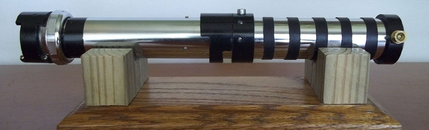 I took some vacation from work to live out my Jedi fantasy and did a custom saber build with sink pipe, pvc, ancient Qui-gon saber circuitry, a joule thief circuit, and 2 big fat LED's! Thanks you UltraSabers for helping me finish the job with a mid-grade blade. The light show is great! Made my dream come true.  My baby.  I also had to make a poster. I want to see the movie where Vader makes his new saber!  Congratulations, You are a Real Jedi... And the saber you made is fantastic...Ultrasabers should make that model and give it your name...+1 for you....MTFBWY...