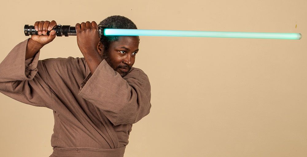 I took some vacation from work to live out my Jedi fantasy and did a custom saber build with sink pipe, pvc, ancient Qui-gon saber circuitry, a joule thief circuit, and 2 big fat LED's! Thanks you UltraSabers for helping me finish the job with a mid-grade blade. The light show is great! Made my dream come true.  My baby.  I also had to make a poster. I want to see the movie where Vader makes his new saber!