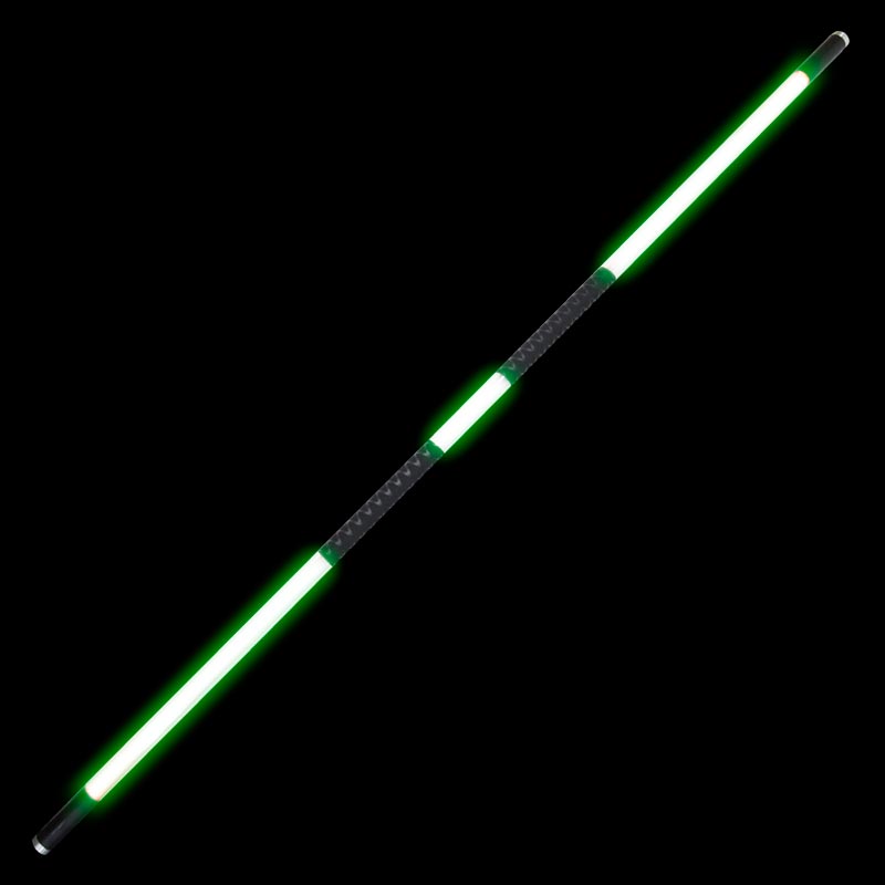 You'd have to wrap/paint/whatever the "hilt" portions are to make them match the gold design of Jade's weapon, and you technically have that little portion on either end that isn't lit, but if someone was looking for a Jade-style LED staff, I think these would be a pretty solid option. Of course, that staff doesn't uncouple, and the blades aren't removable, so it's always a 6' staff, but it's the only 3-portion LED staff I've seen. From an in-universe perspective, that central part being lit up would be a bit strange, as I'm not really sure how it would even work, and unless you had saber-resistant skin/armor/etc. handling it would be a nightmare, but her weapon does already look almost like a saberstaff as-is.