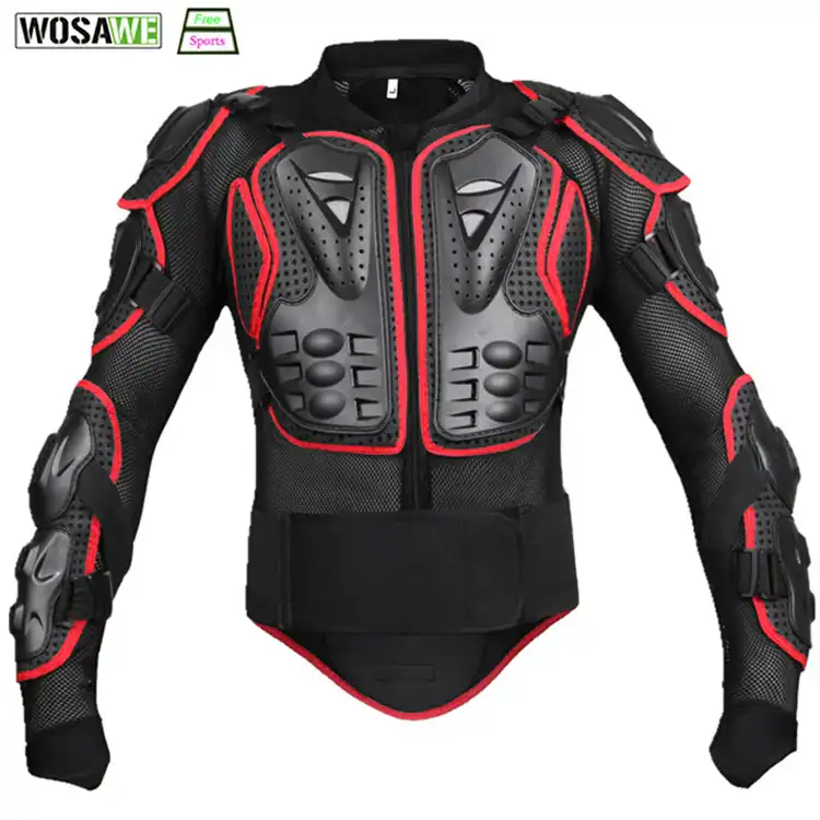 Hopefully this suggestion might be useful. You could take a look at BMX body protection padding. It is lighter than full on motorcycle armour and cheaper but still has some decent protection (I would imagine).