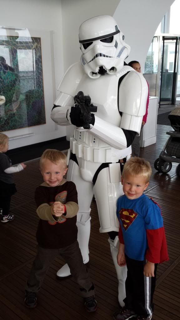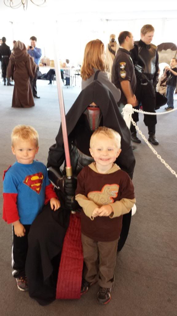 Here are a few pictures of me and my family at a recent Rebel Legion/ 501 Legion event in Wisconsin. It was a great time. The kids had a blast. Four of our base members did a lightsaber demo with Ultra Sabers and all of the money charged for the seats in the theater ($2 a head) went to Make A Wish Foundation. It was a very nice day and everyone, costumed members and public, had a wonderful time.