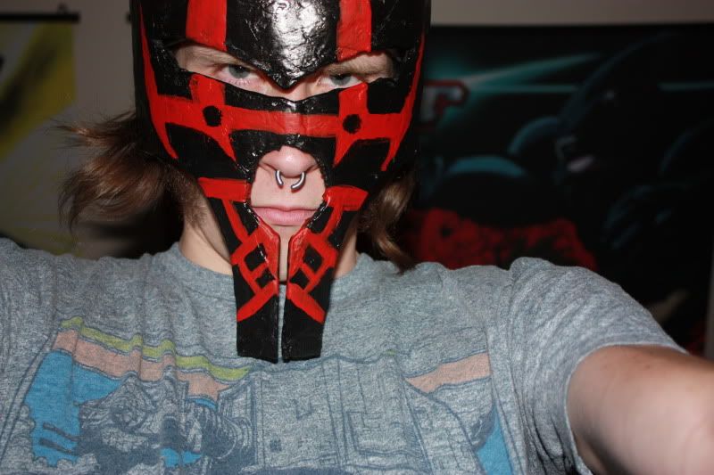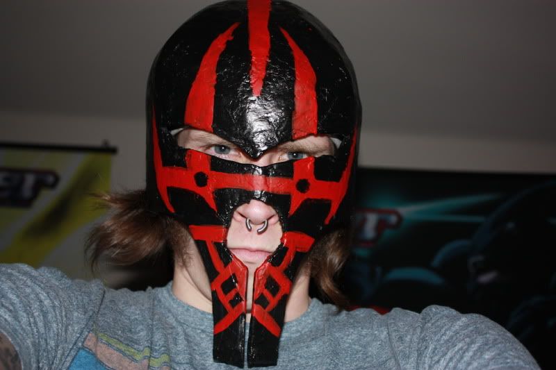 yeah I plan on doing a little ware and tear on it, I want a scorch mark on the side to look like a blaster just nicked it. I would have made everything more machine like and perfect if I were going for the sith warrior but the inquisitors have more tribal looking armor with bits of tech in the mix. I thank you all for the compliments, but I just saw below theres another sith mask post with a guy that did the tech looking one and it looks way better then mine lol oh well this was a first attempt. I am also making a shoulder pad thing that looks kinda like saiyan armor but I am going to put some leds on it and on the other shoulder I have a leather shoulder guard so again half tech half ancient tribal Sith, oh and a bracer that can hold my iphone so me it will look like a communicator when me and my girlfriend face time. :p cant wait till I am finished with the whole thing.  Has anyone had any experience with wonderflex? because I am thinking of using that instead of cardboard for the rest of the armor...