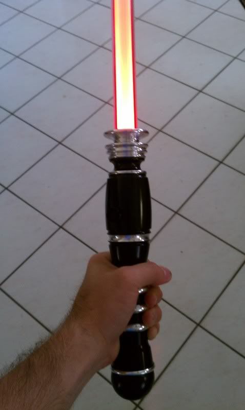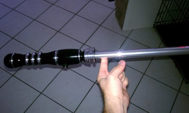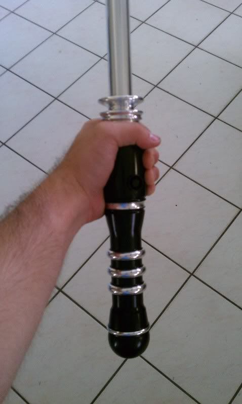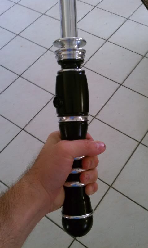 From the grip with the heavy grade blade, the lightsaber feels top heavy. However, when wielded from the choke (picture below) it feels as if you could bludgeon your enemy to death with it.