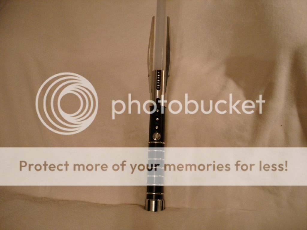 This is definitely the heavier of the three in my opinion, but it feels balanced really well with the heavy grade blade.  I really have nothing bad to say about the Guardian and would probably say that it is my favorite of the three at the moment.  The sound is slightly lessened by the longer pommel and the speaker being back a bit from the openings at the bottom, but still really loud.  Despite it being heavy, I can still spin it fairly well and actually the weight of the hilt sometimes aids me in spinning because the momentum seems to help me bring the blade back around.  I am no means an expert wielder or spinner with these things, but am okay at it.