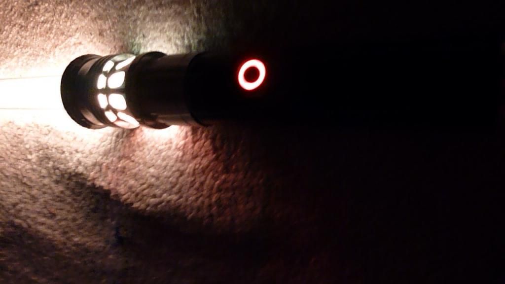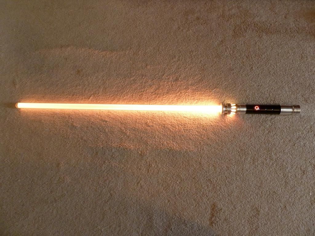 Here is a pic in the dark. I now see what people mean when they say that photographing these sabers are difficult. The yellow looks washed out in the picture to me, but in real life it's pretty damn bright:
