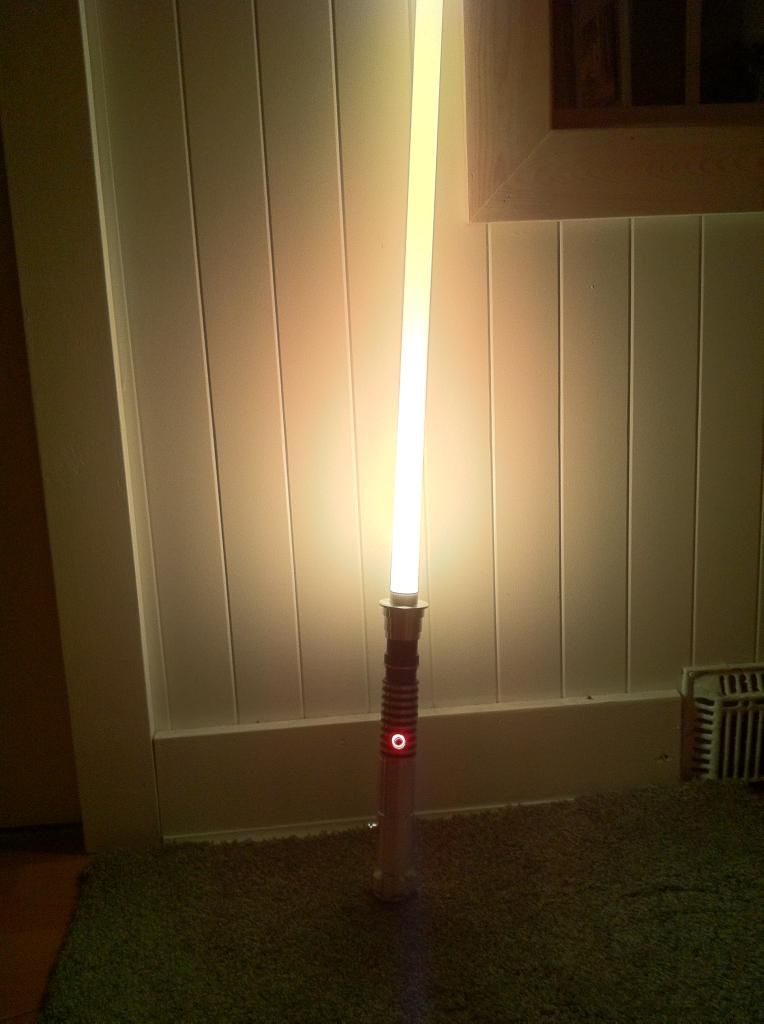 Oh, I love the Prophecy. Wife and I had our first Prophecy vs. Aeon driveway dueling deathmatch around midnight on Saturday night, haha. She was all smiles. We had to take it slowly so as not to whack each other on the knuckles too badly. Honestly though, I have no martial arts training or anything so I want to be careful practicing with the Prophecy since it's my nicest saber right now and with my lack of skills, I'm prone to what Magik referred to as, "throwage", haha. I'll likely pick up another couple of grab bags between now and October, possibly for my brother in law and niece as they are working on their Jedi costumes for the upcoming SW birthday party. I'm enjoying my UltraSabers so much that I want to try out a lot of different hilts, in a lot of different colors! Yellow was not a color that I expected I would like, since I'm more of a traditionalist. That's why I went with AS for my "practice" hilt. Lately though I've been a big fan of the non-traditional colors and it makes me want to try out more sabers! Yellow, orange, red...I want them aaalllllllll...