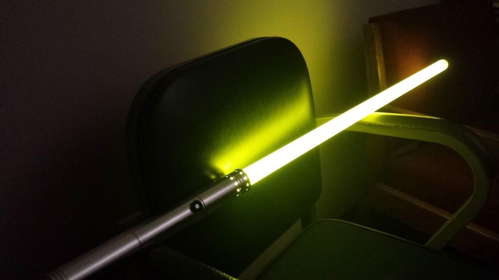 Thanks Ziran Le! The yellow itself is just a little darker than the top photo, but I used the white of the wall to show that there was no green/red bleeding through. But your right, a richer yellow is nicer but it gets too dull at the top half of the blade to enjoy. Bummer! It's interesting that orange is brighter to the tip than yellow is. Who knows?  The Archon is by far my favorite hilt, and it is MUCH nicer when you have it in person vs photos/video(aren't they all!) But seriously it exceeded my expectations. Start saving!