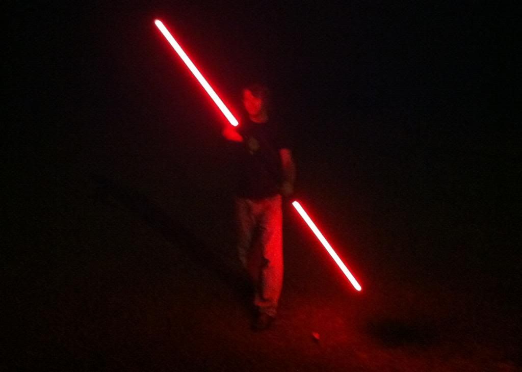 Here you go. A new Dominix picture. In a Heavy Grade blade. =] The way I did the picture looks so real. I used my phone camera. Good quality. And the way the picture turned out looks like the movies and games too. I'll do some more. I'll be using this with my Sith costume. ;o Though I do want to get that new wooden MHS sleeve from the other guys for a newer shroud. It'll be the same shape though.  I like the new emitter.