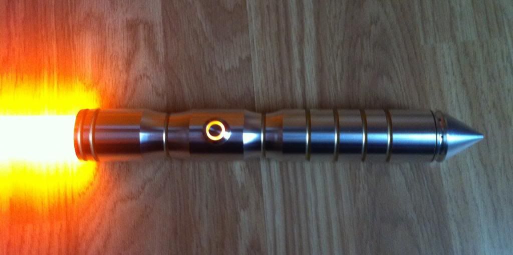 -Arbiter w/ sound in Dark Violet Amethyst and Orange AV switch... Now a custom crossguard saber with spike pommels on the sides.
