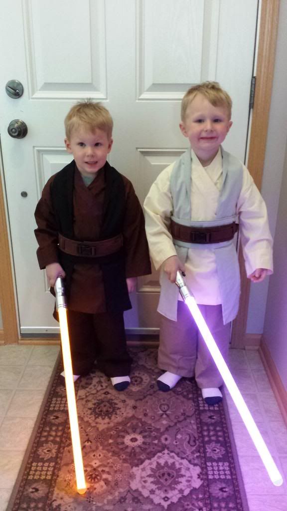 I just finished Jedi costumes for my kids. They out grew the other ones I made for them but have really taken a liking to Star Wars (daddy is smiling ear to ear). The Rebel Legion and 501 groups in my area host a big event in the summer that draws in hundreds of spectators. The boys had a blast last year so I decided to make nice Jedi outfits for them this year.