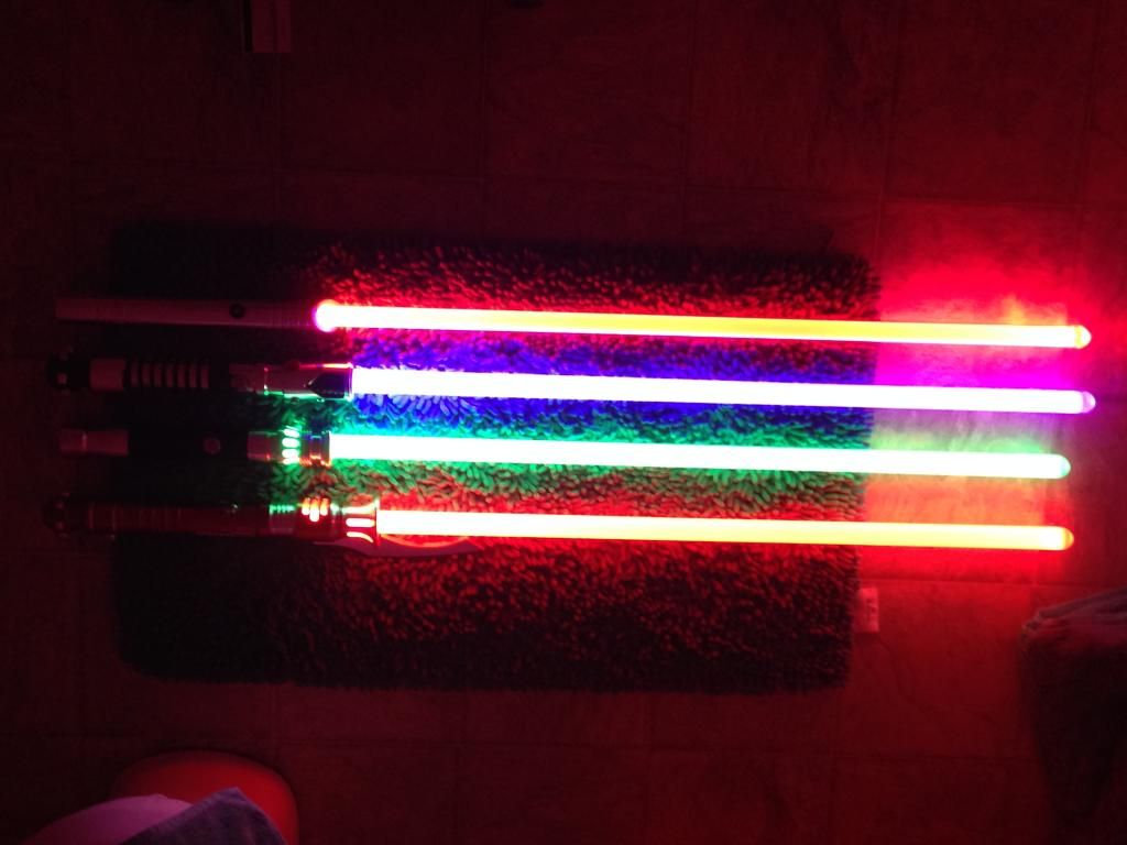 And finally here is a pic of all four lit up. Thanks again UltraSabers for the raffle and I love your products.