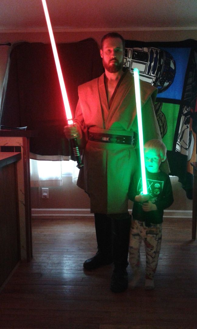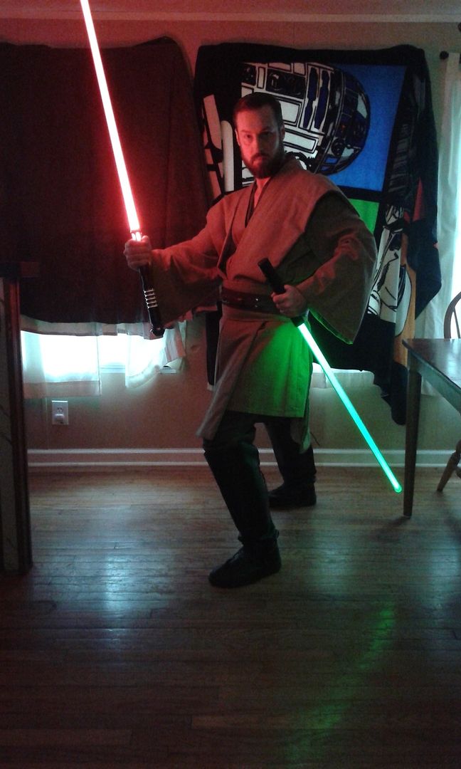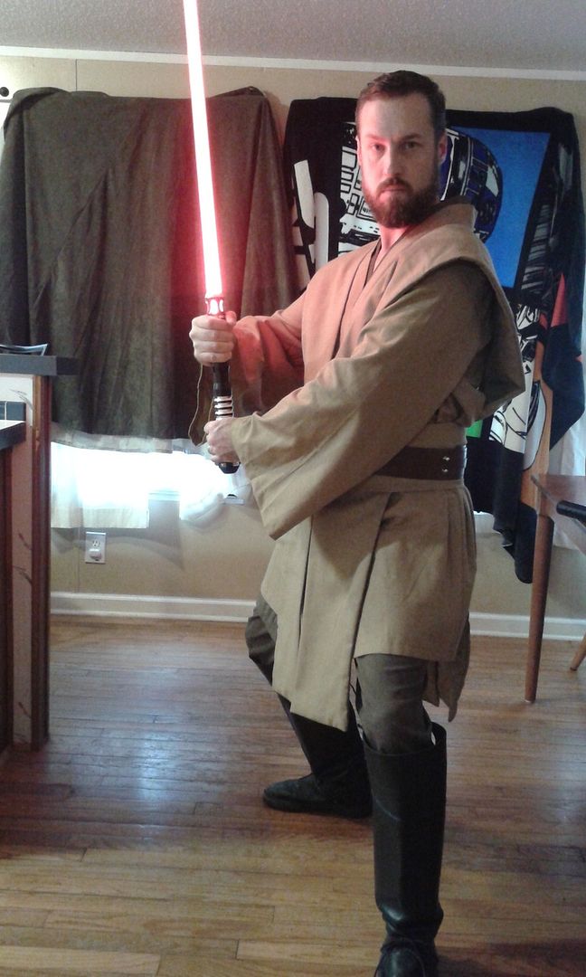 I'm probably more Gray Jedi as well.  After all you've seen my pictures as a Sith and read a few of my posts talking like a Sith.  On this occasion I just really wanted a genuine Jedi replica costume.  Someone at the place I work has pointed out that when I am in costume I look like I could be a relative of Obi Wan Kenobi.  Most of the time I really do want to be a good person / Jedi character, but when I get really pissed off about something, I really do want to be Sith.  So when it comes to my view of the Force in the Star Wars stories, there is only the Force, no light side, and no dark side, just the Force.  What one does with it is what is either light or dark, Jedi or Sith.