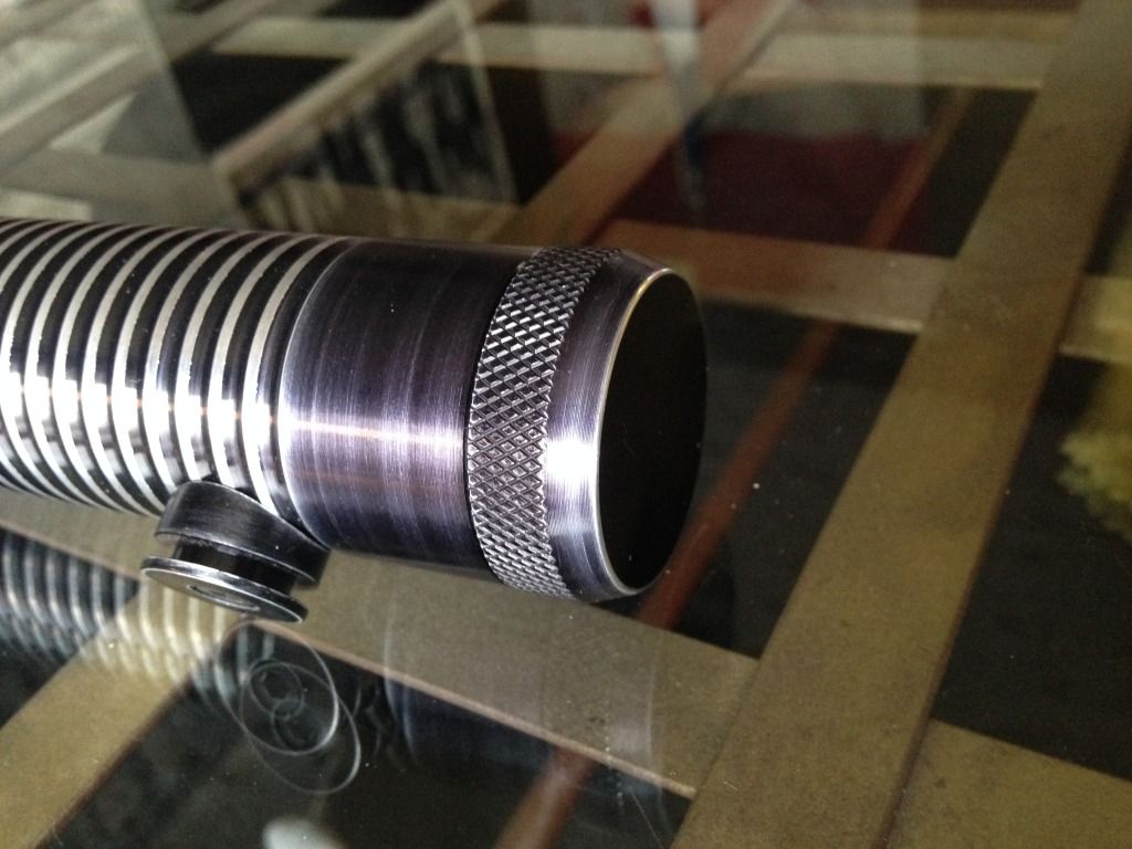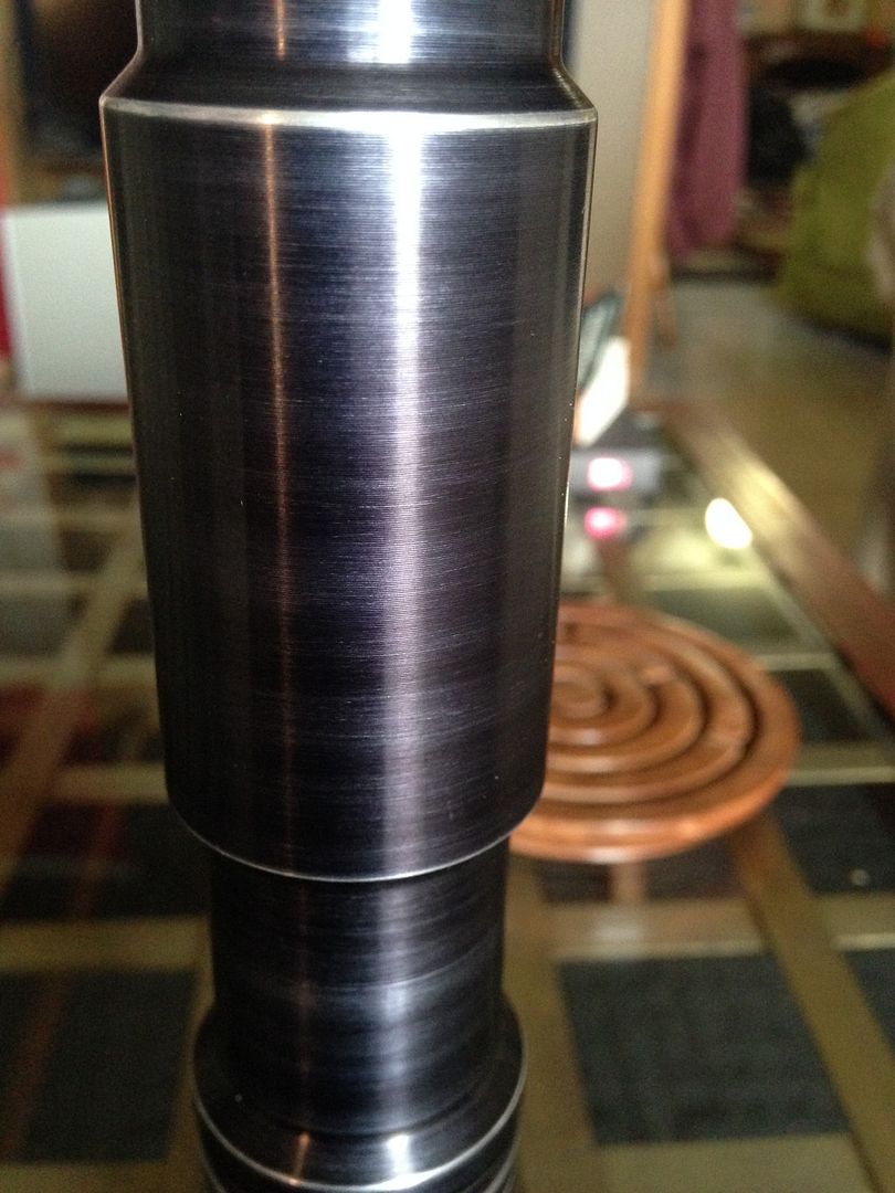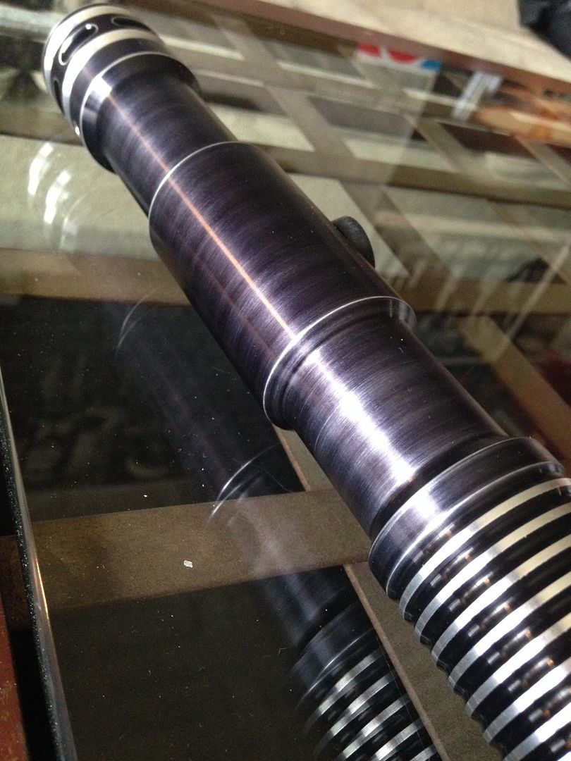 i left the lower choke between the grips and the switch area blank because that's where I'm gonna be putting one of the little fabrications i'll be doing- just a little add on to the body of the saber for looks- and that spot is strategic, since my hands aren't often there.  but in any case ill be sure not to wreck the grip of the hilt.  any changes i make to the profile etc. of the saber are gonna jive with grip n all that, since this is my main duelling hilt these days.  i really like the feel of the sentinel, so whatever i do will preserve or improve its fit to me for sure.