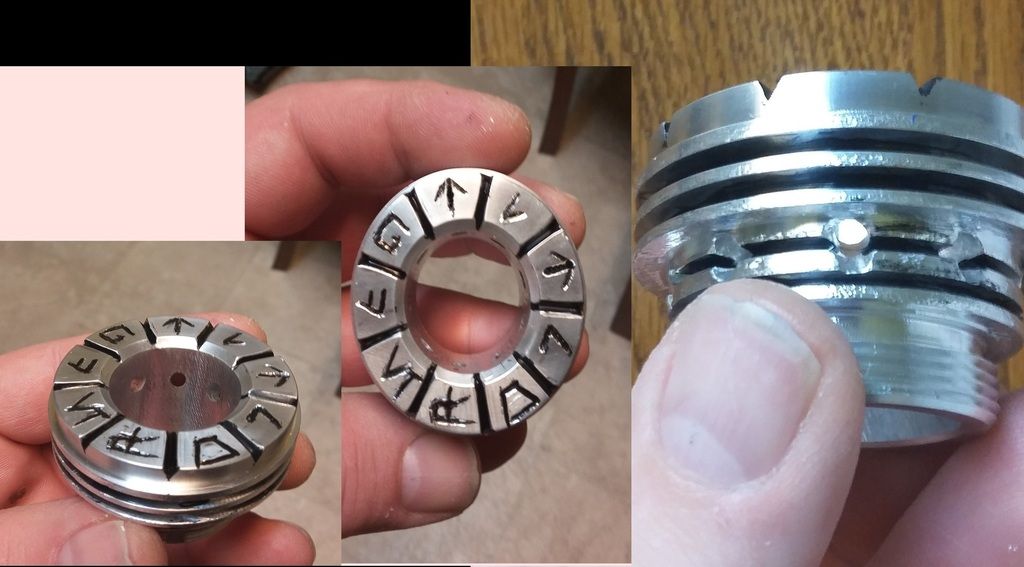 Its still ROUGH, need touch up on paint, and smooth out some lines on the engraving,  here i cut/ filed grooves on the Emitter itself, to match the grooves on the raven SS pommel, Added some Aurebesh. It spells out " Fortitude ". Been a long time i engraved something so, its a little sloppy. Gave it a quick paint job so i could see it better, will be going back for re- lines, and a surface polish. added some texture to the outer grooves.
