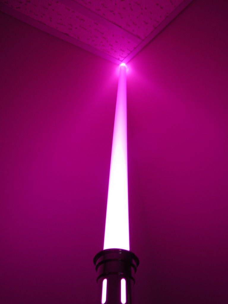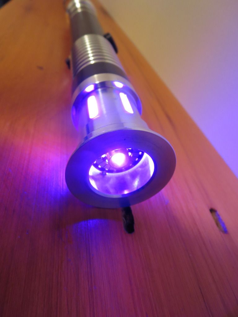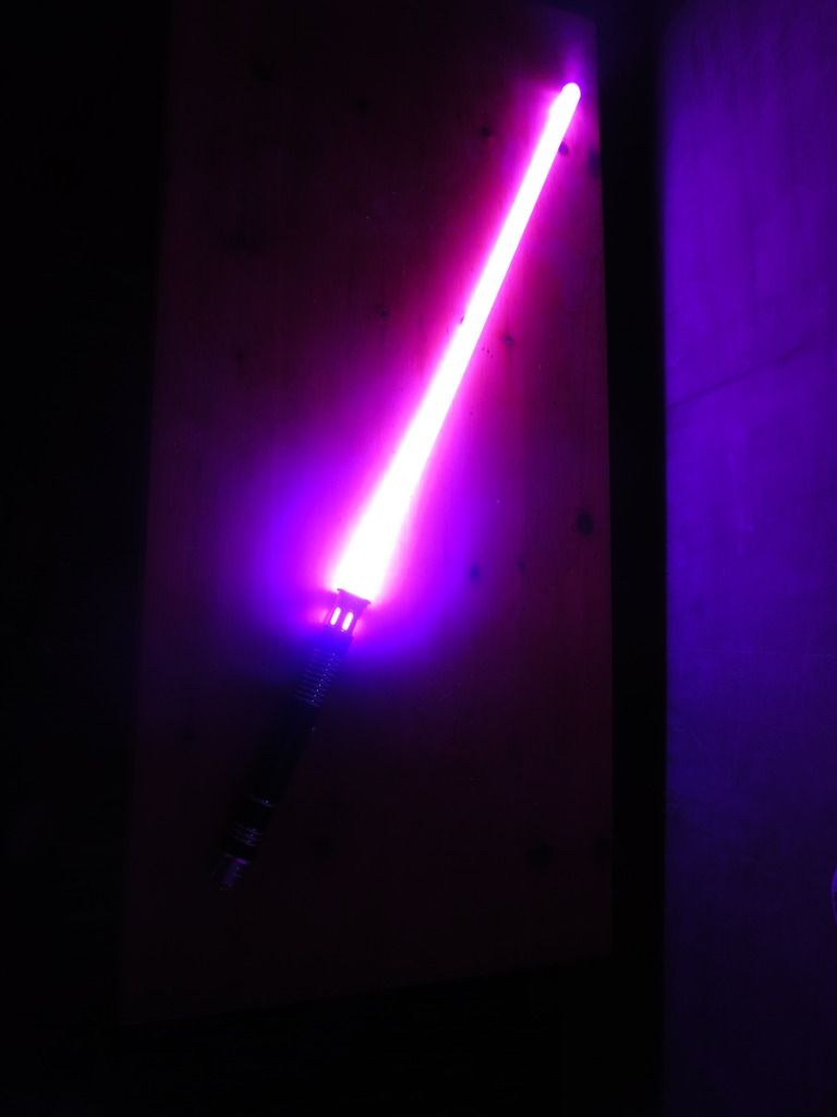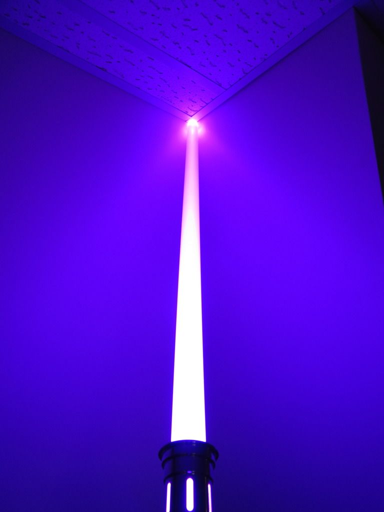 Thanks everyone. Hi. This is a beautiful saber with the sleek lines that I can fully appreciate. Nice simple kill key and the extra light from the blade plug looks so good. The D-ring looks very sturdy and compliments that pommel. You have a really nice saber collection in multiple blade colors which for me, makes it better. Your photos showing the distinct 3 colors are some of the best. All crisp clear photos.  Thanks for sharing. awesomeness point  I was a little concerned how tall the kill key was at first but I've found that when I grip it it works nicely between a couple of fingers or just ahead of the grip. As to the clear photos, they're probably the best out of the 20 I took. Getting a good one for the flash color was a bit of a challenge.