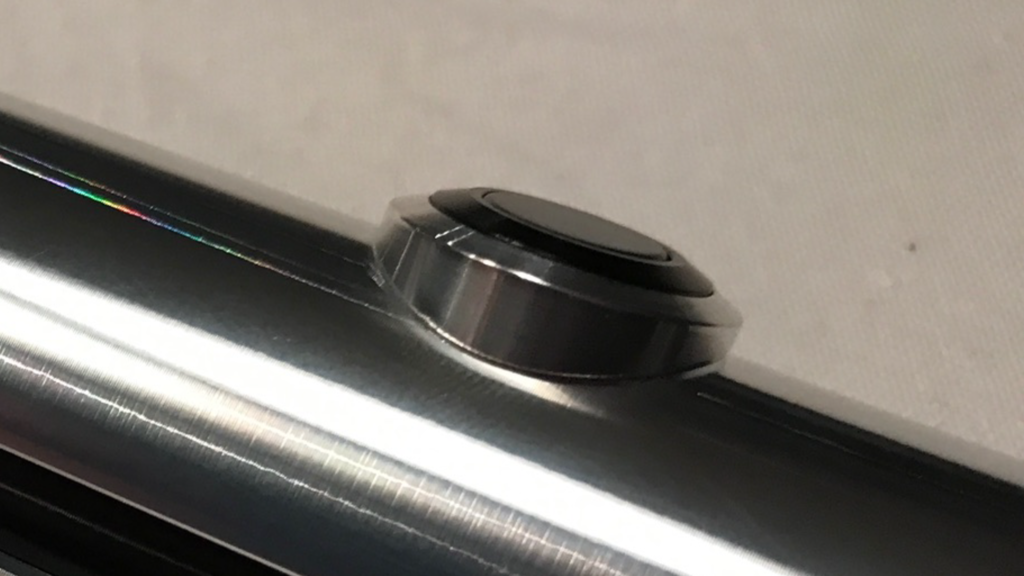 . . . and put on a high-polish, domed, stainless steel switch.  It perfectly compliments the shroud and engraved designs.  In particular, I think the rounded actuator is PERFECT for where it sits close to the bend on this curved hilt.