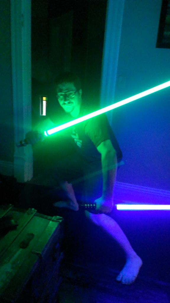 Here are a couple pictures of my ultrasabers one with myself with them Smiley
