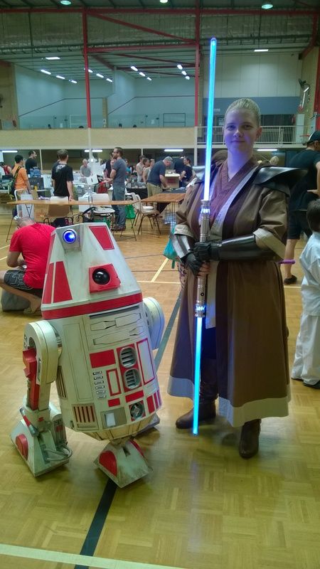 This was at a toy fair today with our local R4 (who is utterly adorable and makes me wanna build our astromech already!) And my shockcore double bladed saber in AB. Never fails to draw smiles and make eyes boggle- and get me told I've got a Darth Maul saber and it's the wrong colour  Roll Eyes