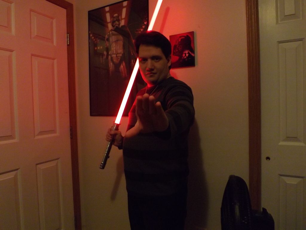 Thanks, hazard!  Here's a shot with the lights on.  Smiley  I haven't gotten a proper glove yet.  That's just my "stand-in" until my commission is done.  I'll be getting a different saber, too.  Wink