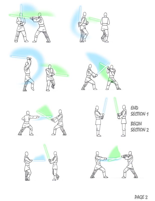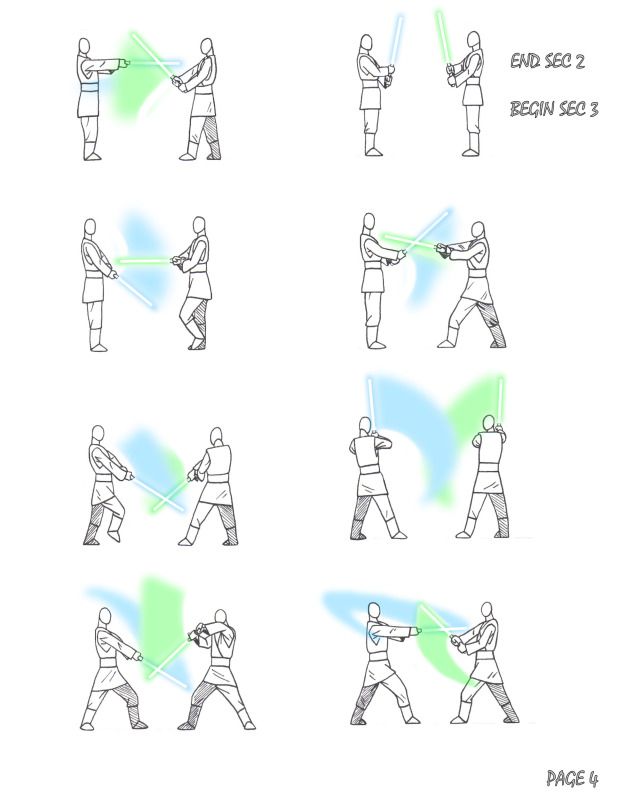 My thoughts on sequences is that I am going to just leave this to the more experienced of you. From what I have seen from people like General Sun, Lucien Kane, and the drawings by Darth Cestual, I think you all have a great system set up. I would like to say that conforming to a rigid form would be limiting, considering the infinite possibilities that creating something like this could offer. If ANYTHING about this form should be set in stone, I would say that the basic strikes (Sai, Cho, and Shiim) and parries be the only thing.