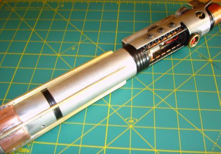 Thanks guys! I'm just getting into building and spacing the rail system. Originally I thought I could cram 2 18650's into the hilt (without a crystal chamber they would fit, so I compromised a bit & am using 2 14650 Li-ion's rated at 3.7 volts & 1600Ma . I'm also making a couple of discs out of some nylon stock I have on hand