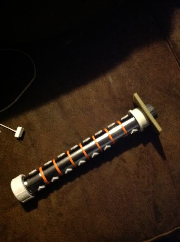 The last thing I will do to the body is a wrap with gray material not sure what I will use for that yet and still have alot more to do will post pics and show as I am making progress, I will be using 3.7V li-ion cell a heavy grade ultrasabers blade and guardian blue LED module more to come