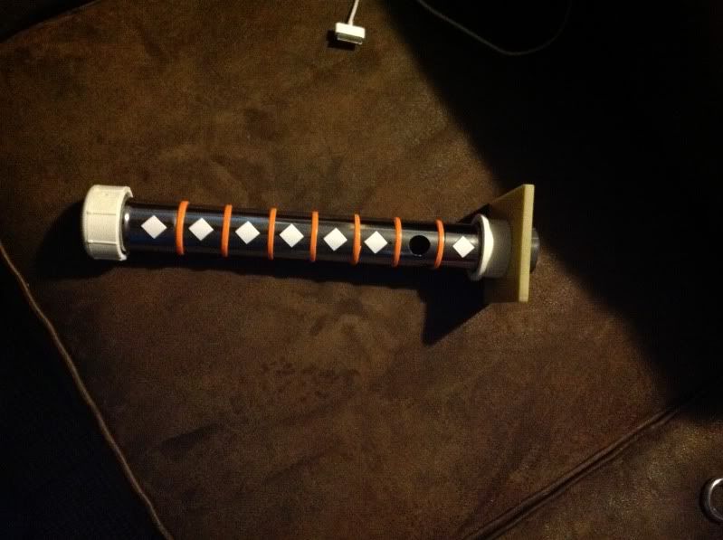 have much in the way of tools at home and or experience so i want to keep it fairly simple.  Orginal plan was to make this a stunt without sound but i can always add sound later if i get bored with it.   One a side note as far as body design in the pictures the diamonds look a little round with heat shrink which isnt really a concern as they are just there for a reference when i do the wrap, and i left the bottom without diamonds because i want to incorporate like a metal dragon or something in the wrap which i have seen on actual katanas