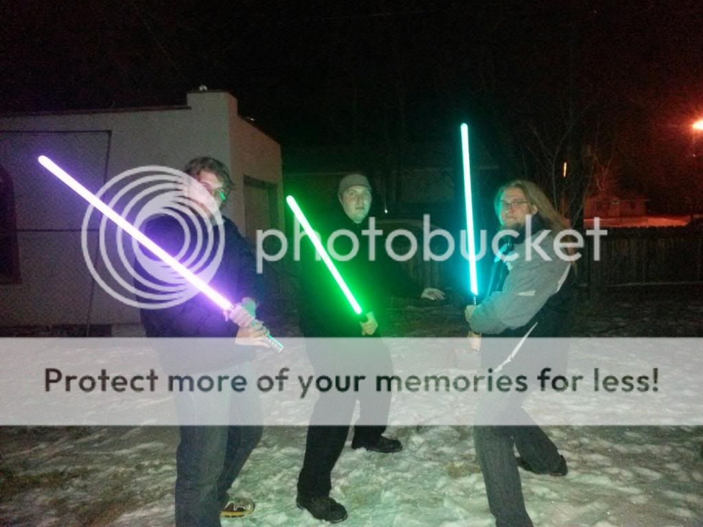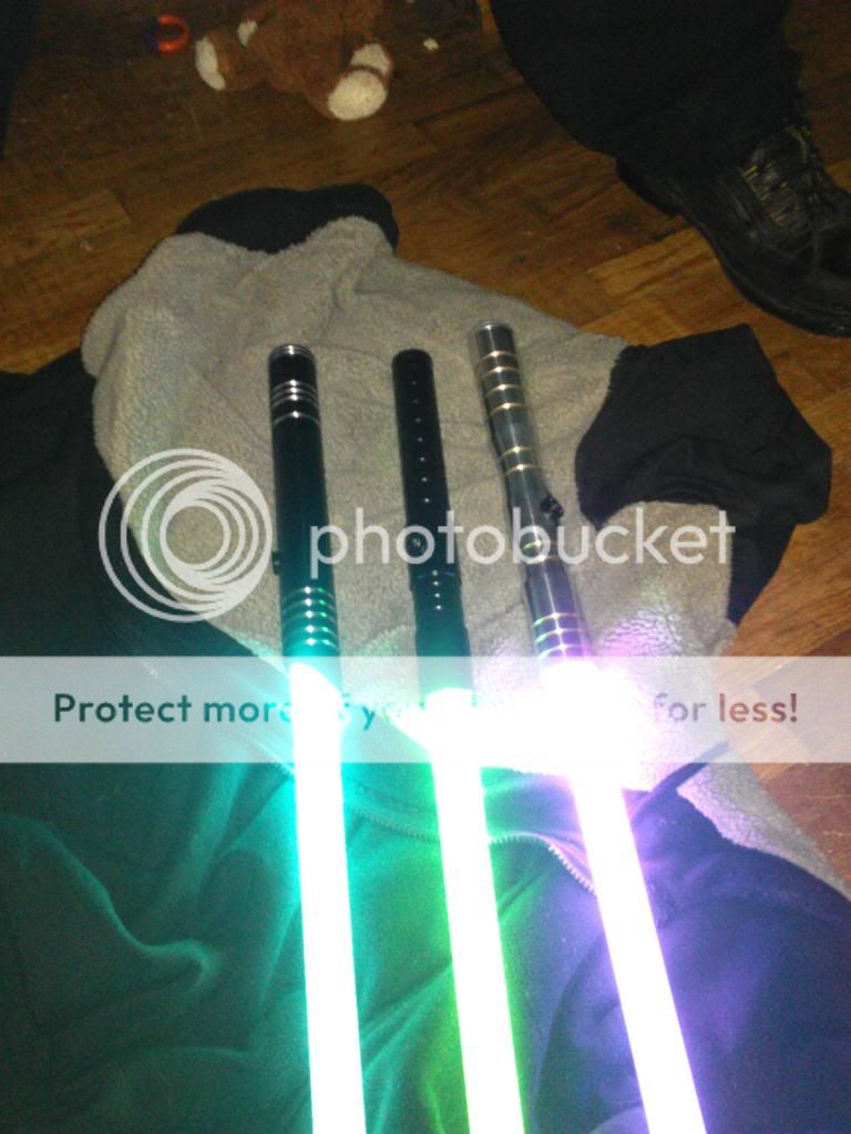 Ah, brotherly love, am I right??  Awesome sabers, got yourself a good band of Jedi(or gray Jedi!!) Just a suggestion if you plan to duel a lot: gloves. I've taken a few nasty hits from a HG blade at this point, and gloves help to protect your hands(arguably your most important appendages in a duel) quite a bit!