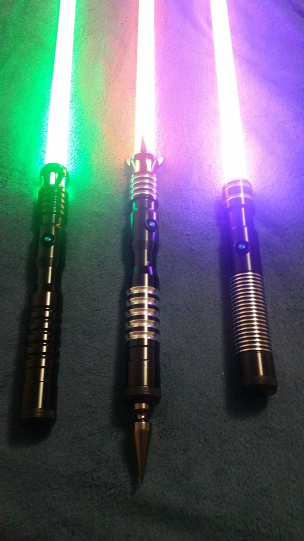 Sabers: Liberator V3 CG ObsV4 sound!, Graflex GB, Overlord AB, Crimson Savior BR, Bane PO, Dark Initiate V2 LE BH, Shock GB, Archon V2.1 CG, Dark Sentinel LE GB ObSLite!, Standard Issue V3 CG, Dominix V3 LE BR, Sentinel SRD, Dominix V2 FO, Exile CG