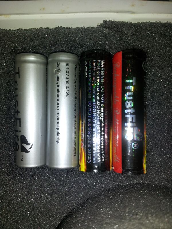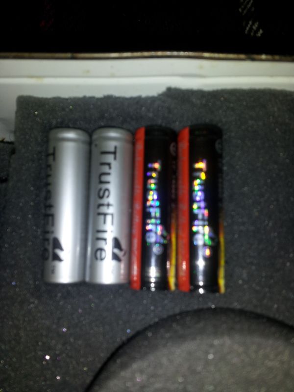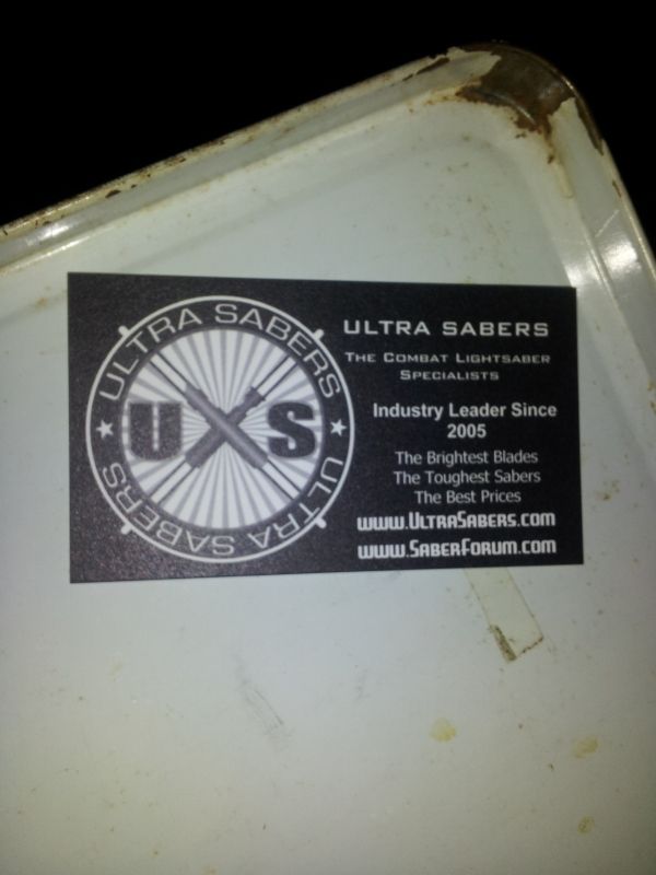 I'll clean up the end of this review by noting two misc things about this purchase. The saber came with 12 Color Discs, which have been loads of fun to play around with, and I also noticed that the batteries in this saber sport a different covering than the last set of Lith Ions I received with a repair job in April. The color discs do significantly dim your saber, but that depends a lot on the combinations you use. For example, if I put a light blue disc in my AS saber, there is no effect. If I put in Red, I get pink, if I put in Dark Purple, I get a wonderful solid purple glow around a white core. If I stick Dark Purple in a CG saber, I get a nice forest green that's about as dim as FO compared to a normal saber. I do not have much in the way of pictures to illustrate these things at this time, but hope to post some eventually. Smiley In the meantime, here's a pic of the set of Color Discs, and one of the Batteries to show the differences. Also, there's a pic of the nifty business cards now included with the sabers!